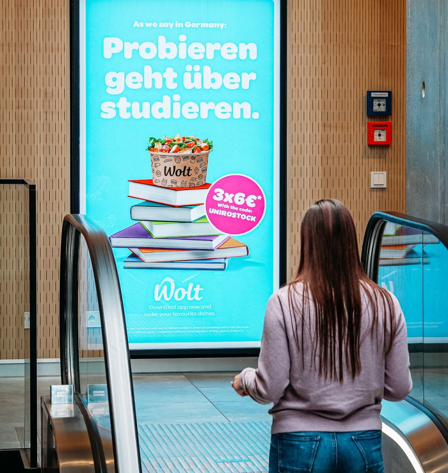Studierende erreichen, wo sie täglich unterwegs sind. Unsere DooH-Werbeflächen bieten Ihnen eine effektive Möglichkeit, Ihre Marke digital und messbar in einer der spannendsten Zielgruppen zu positionieren.